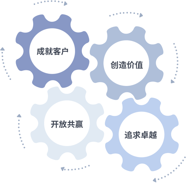 成就客户是一切决策的出发点,创造价值是衡量所有工作的标准,追求卓越是六合联盟官网做事做人的态度,开放共赢是六合联盟官网的格局也是最终的结果。价值观的齿轮环环相扣,推动着组织里的每个人不断向前。